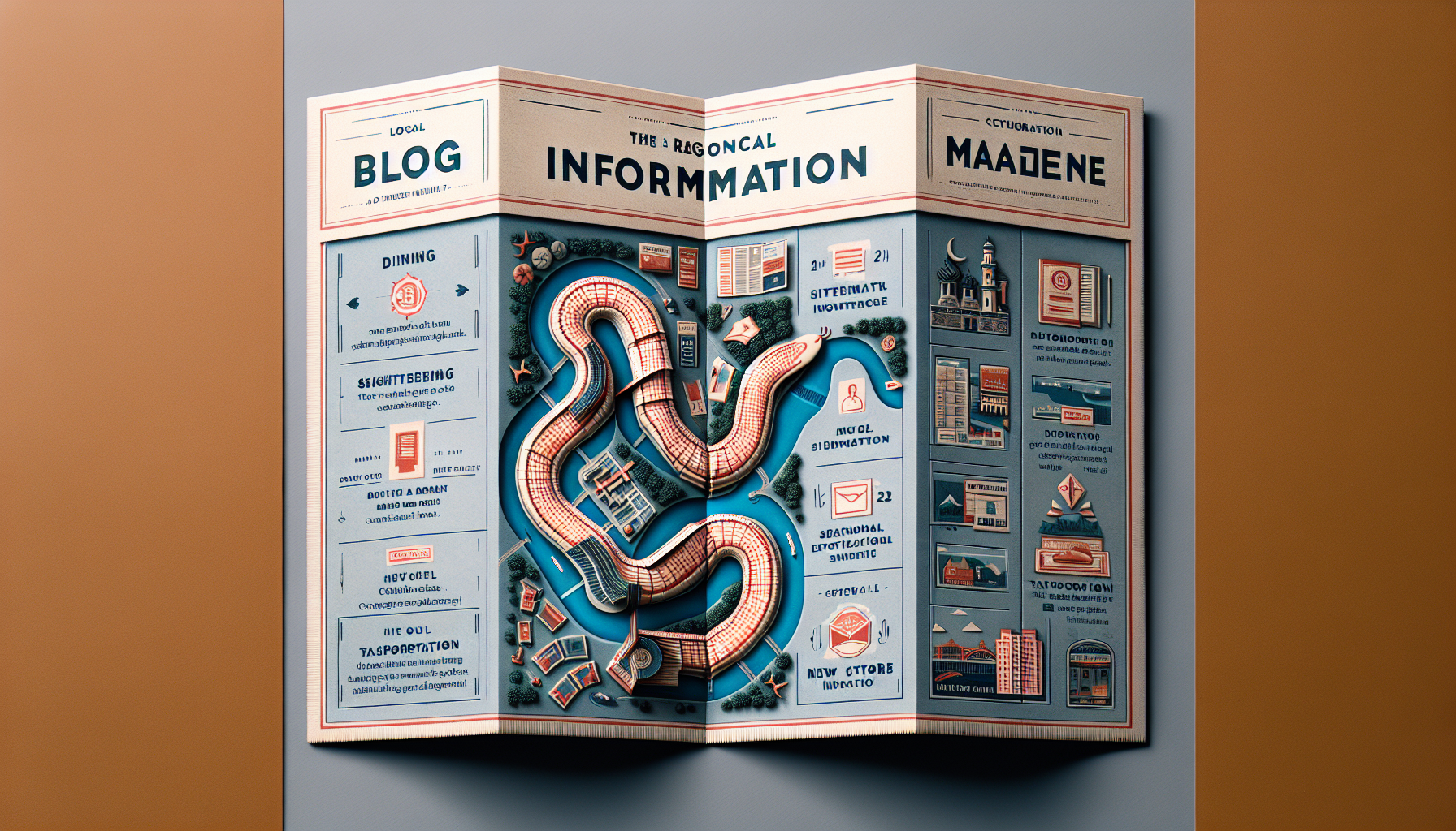 蛇腹折りは、その独特な折り方によって、情報を段階的に開示できる特徴があります。この特性を活かすことで、地域情報誌の閲覧体験を大幅に向上させることができます。例えば、最初のページには全体マップを配置し、折りを開くごとにエリア別の詳細情報が現れるようにデザインすることで、読者は必要な情報に効率的にアクセスできます。